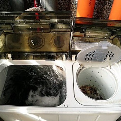 Machine à laver semi-automatique LG 7kg. Économe en eau et en électricité, adaptée aux réalités congolaises. Double cuve, essorage puissant.