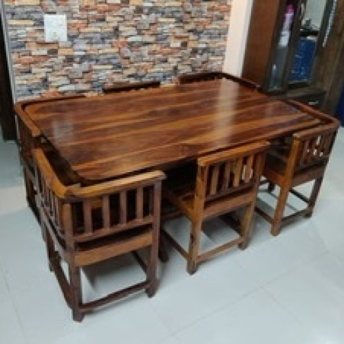 Table à manger 6 places en bois d'iroko massif, essence noble de la forêt équatoriale du Congo. Fabrication artisanale à Kinshasa. Bois traité anti-termites.